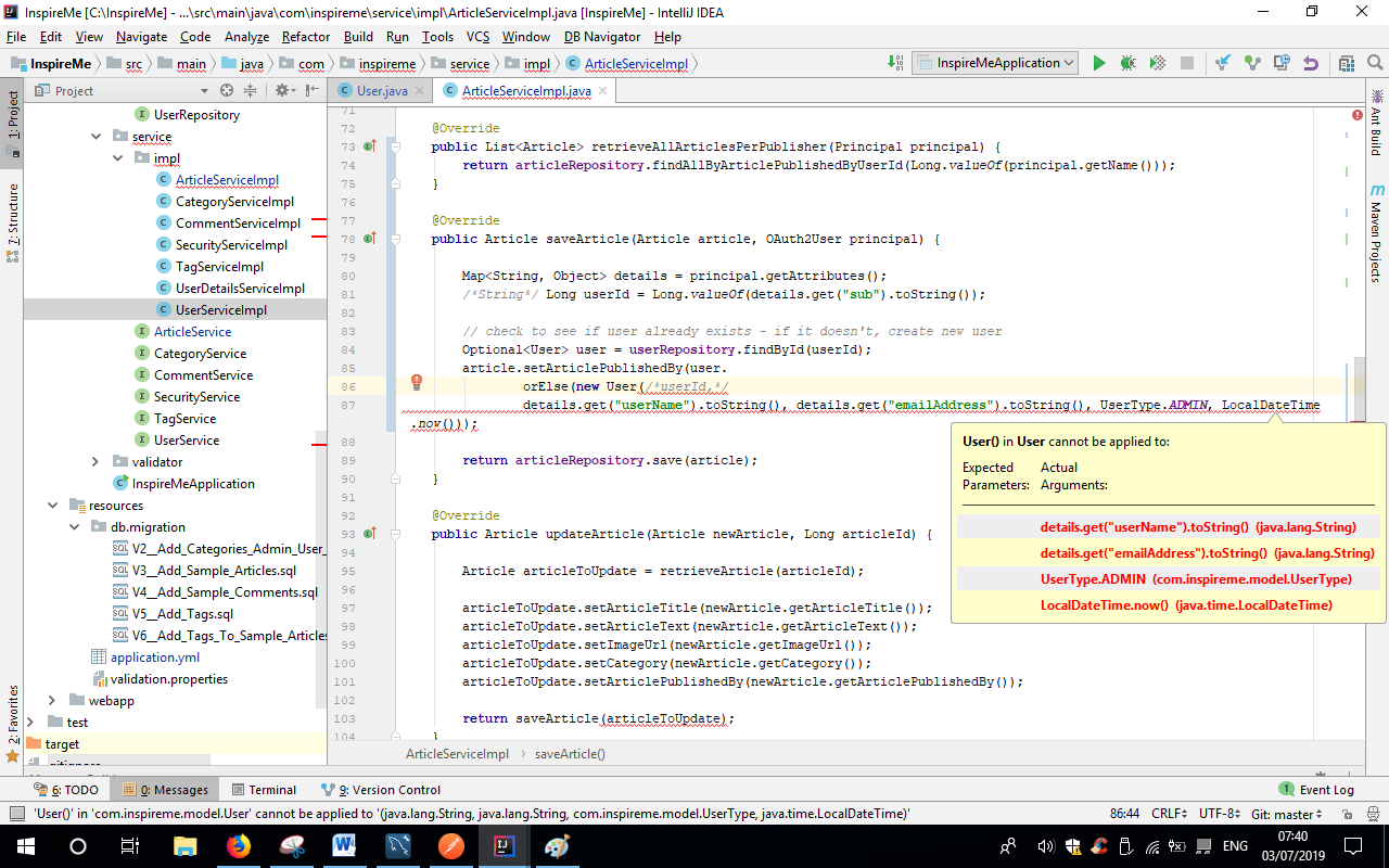 I can’t understand the following error with the User constructor (I use Lombok so the constructor is defined behind the scenes). Could you help? https://uploads.disquscdn.c…